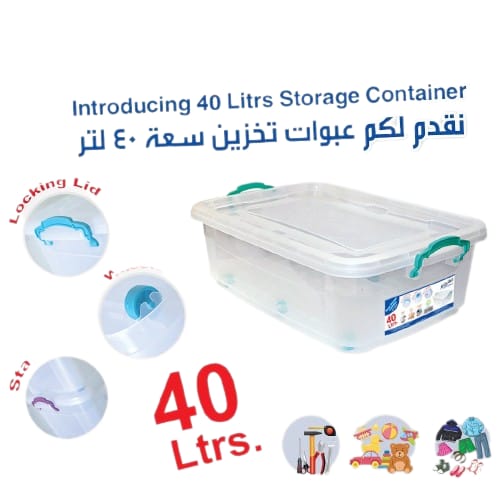 صندوق تخزين عائلي سعه 40 لتر شفاف مع عجلات